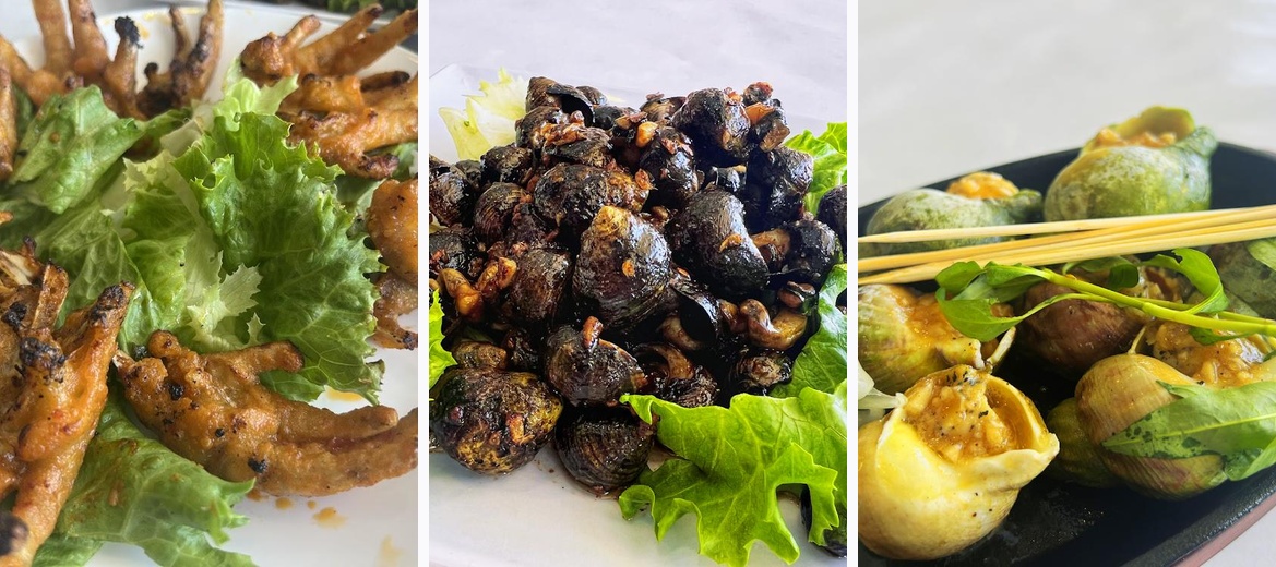 At Bệt Concept, you can't miss the Pho, especially the Pho Akaushi with its rich broth and high-quality beef cuts. The grilled scallop with cheese is also a popular pick, along with their famous chicken feet and various types of snails and clams.